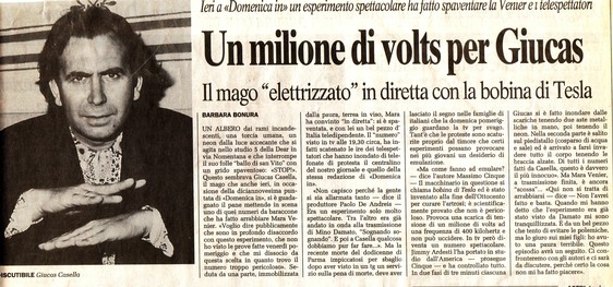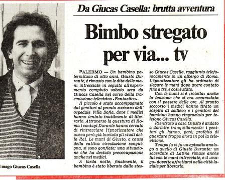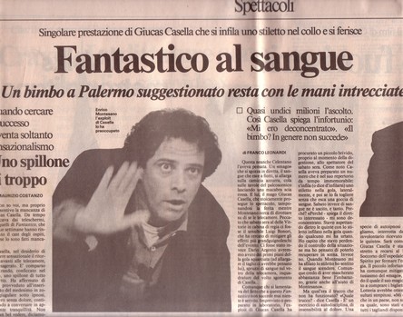 Suscita vive proteste con richieste di chiusura del programma, l'esperimento in cui, durante il Fantastico 1988 condotto da Enrico Montesano, fallisce l'esperimento di fachirismo consistente nel trafiggersi il collo con uno spillone in stato di auto-ipnosi: una distrazione favorisce una grave fuoriuscita di sangue che macchia in maniera vistosa la camicia, con reazione indignata dei presenti e dei telespettatori.